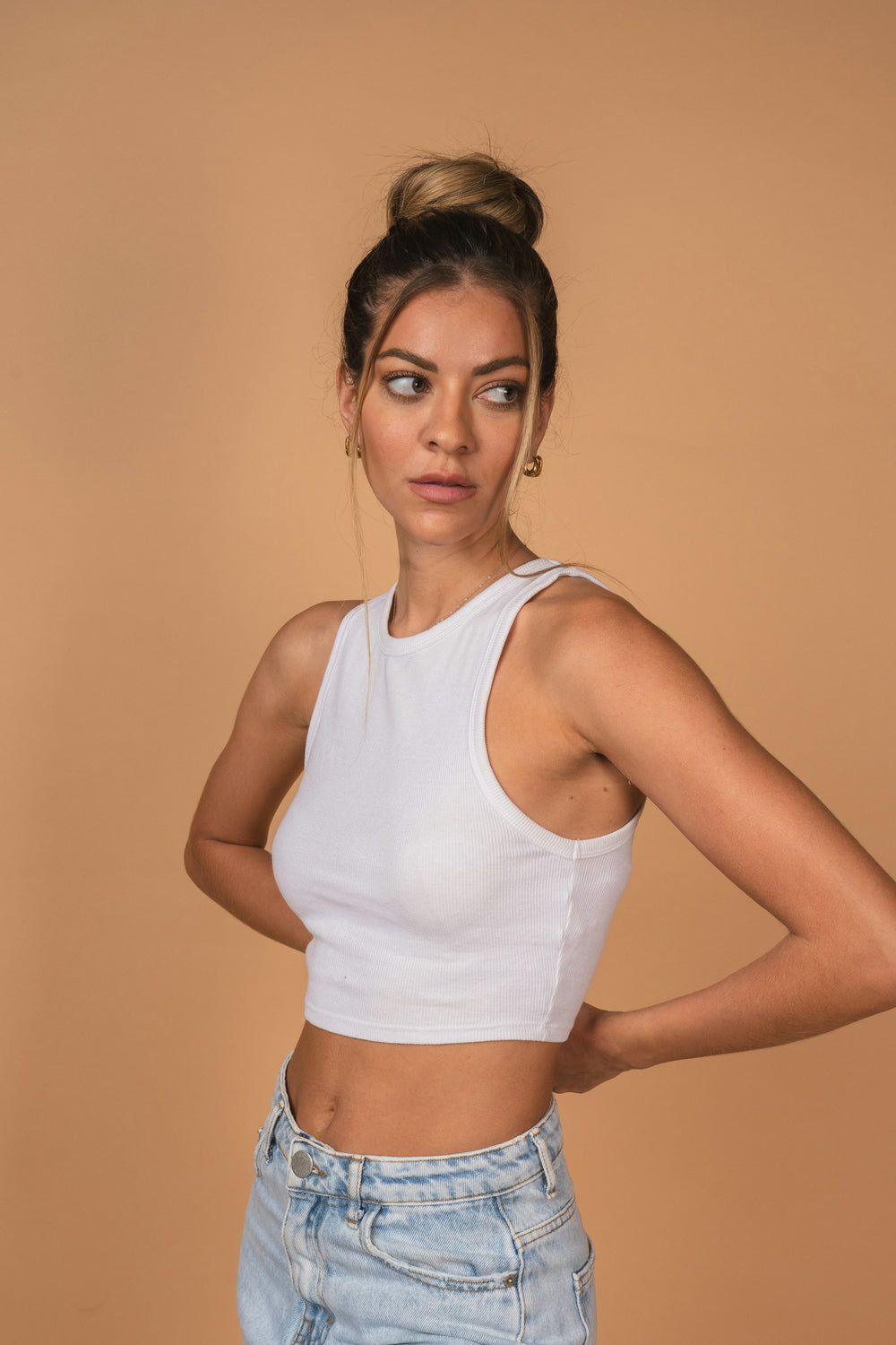"@paulamiller in the ribbed crop tank top"